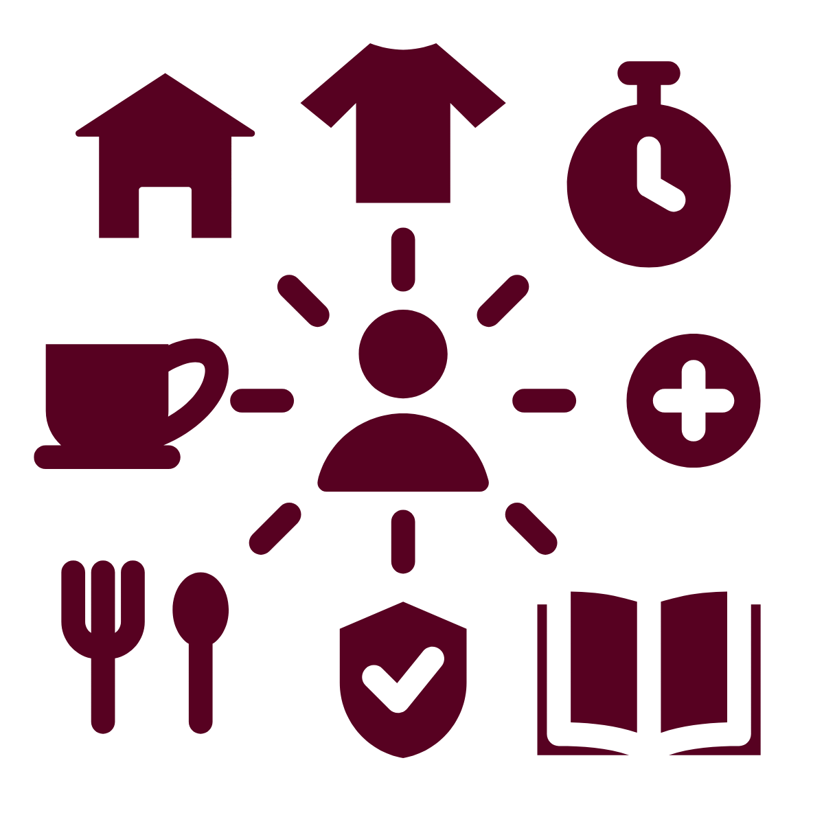 Providing food, clothing, and housing aid to support family stability and well-being.